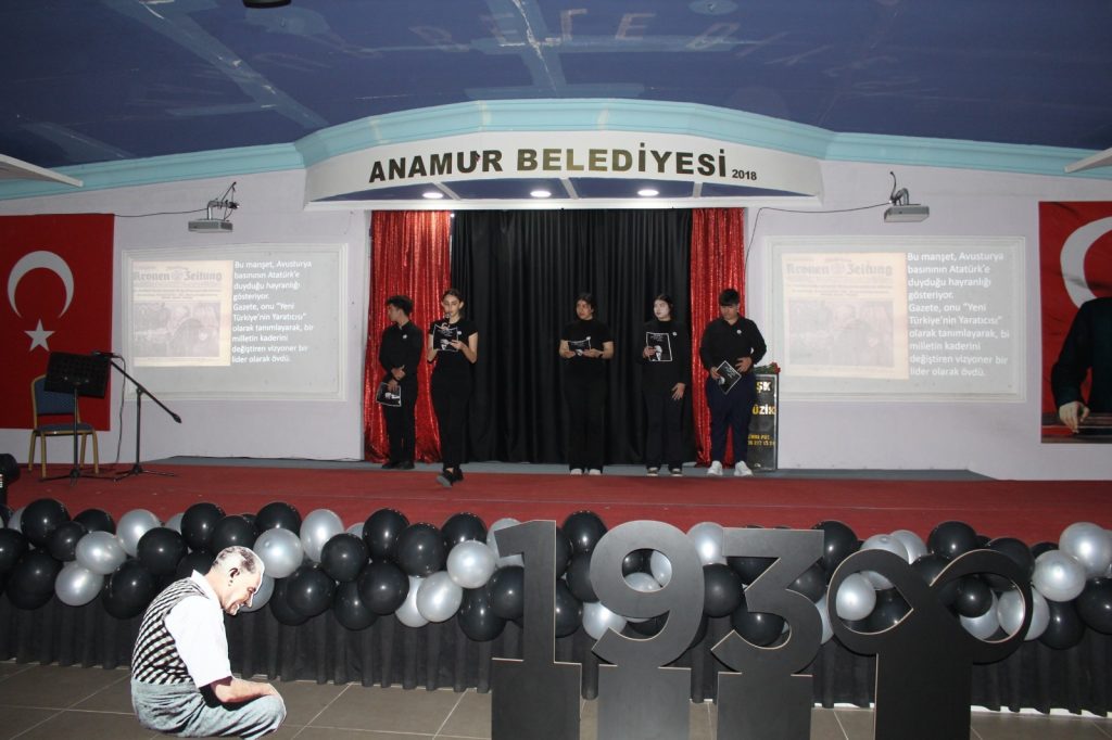 Çelenk sunma programının ardından Anamur Belediyesi Kültür Merkezi Şair Abdülkadir Bulut Salonunda 10 Kasım Atatürk’ü Anma Programı gerçekleştirildi.