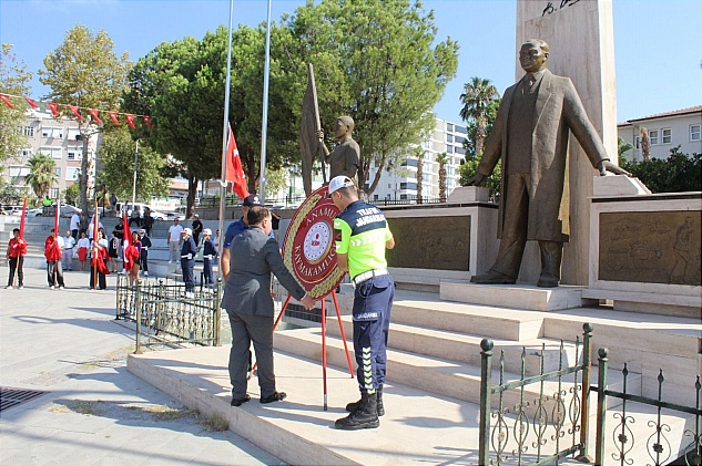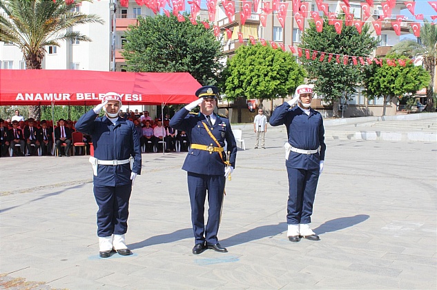 Tebrikat töreninin ardından Cumhuriyet Meydanı’nda çelenk sunma töreni yapıldı. Anamur Kaymakamı Kemal DURU, Garnizon Komutan V. Yüzbaşı Ergün ÇAMOĞLU, Anamur Belediye Başkanı Durmuş DENİZ, Cumhuriyet Başsavcı V. Alptuğ DOĞAN, kurum amirleri ve sivil toplum temsilcilerinin katılımıyla Atatürk Anıtına çelenkler sunuldu.