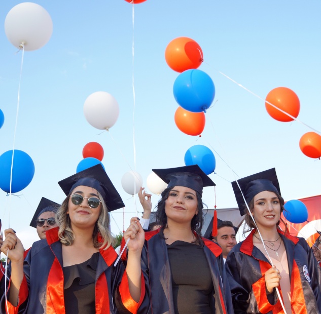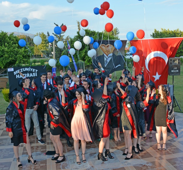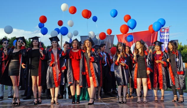 Törenin sonunda öğrenciler keplerini havaya atarak mezuniyet coşkusunu yaşadı.