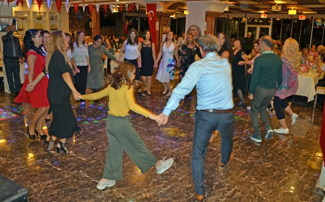 Ünlüselek Hotel’de üyeler ve davetlilerin yoğun ilgi gösterdiği balo, saygı duruşu ve İstiklal Marşı’nın okunmasıyla başladı. Ardından Naile Filiz’in yönetiminde andımız okundu.
