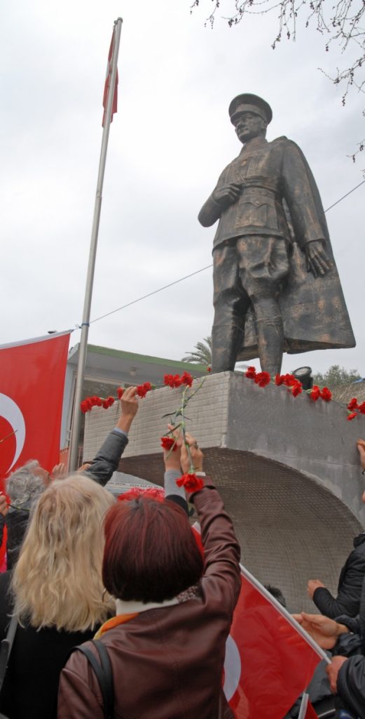 ADD Başkanı Gökçin Yalçın, dernek üyeleri ve bir grup vatandaş, ellerinde Türk bayrakları ve karanfillerle eski Cumhuriyet meydanındaki Atatürk Anıtı’na geldi.