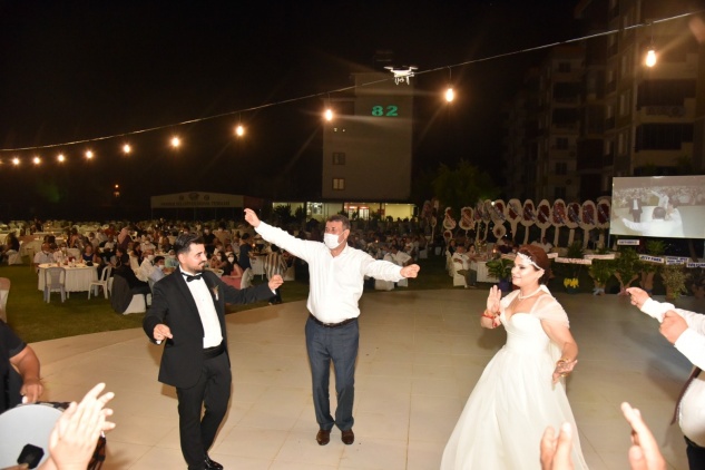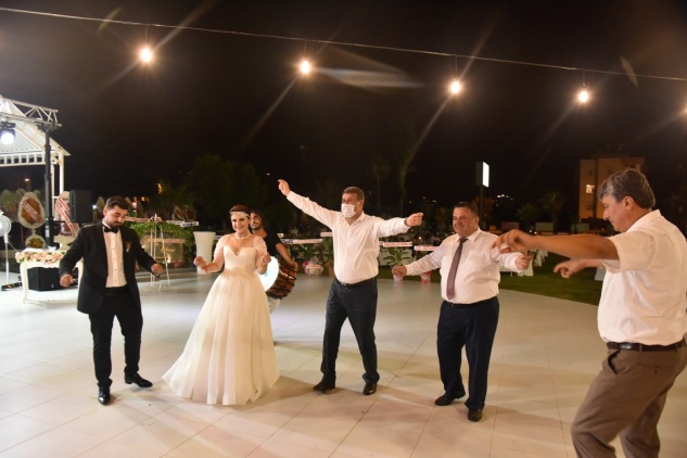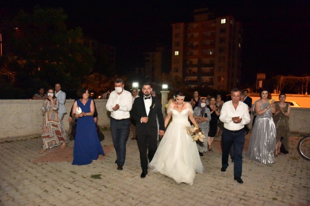 Ayşegül – Ahmet Çetin çiftinin kızı Tezel ile Sultan – Yüksel Malkoçoğlu çiftinin oğlu Okan’ın 82 Sosyal Tesisleri’ndeki düğününe çok sayıda davetli katıldı. Düğünde sosyal mesafeye dikkat edildi.