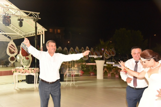 Belediye Başkanı Hidayet Kılınç da düğüne katılarak genç çiftin oyununa eşlik etti. Kılınç, genç çifte hayırlı uğurlu olmasını diledi.