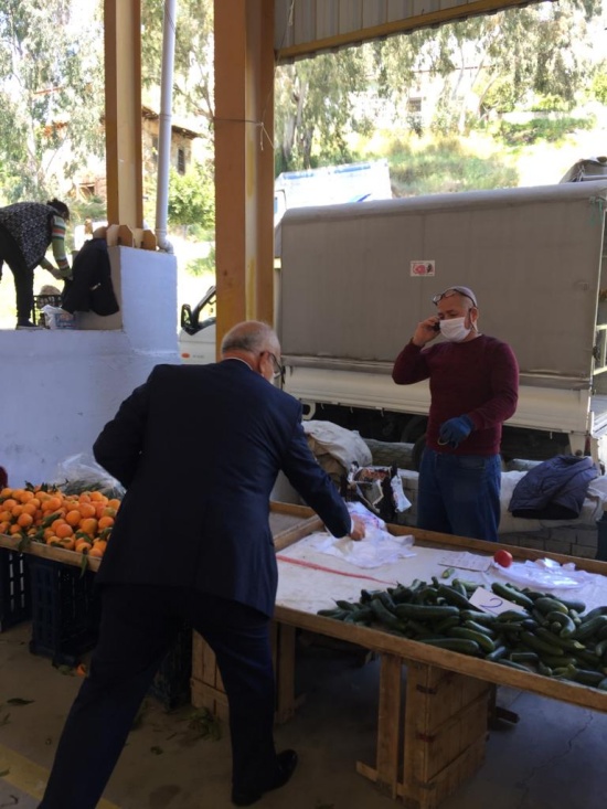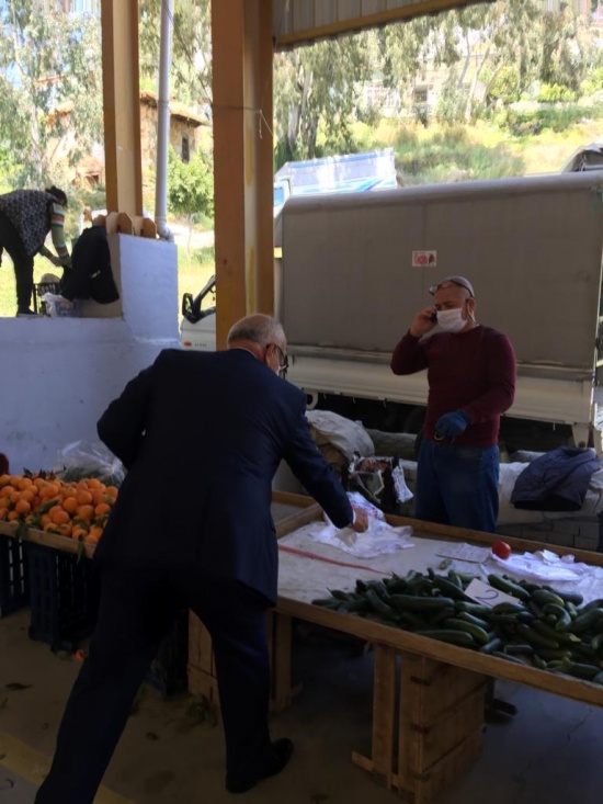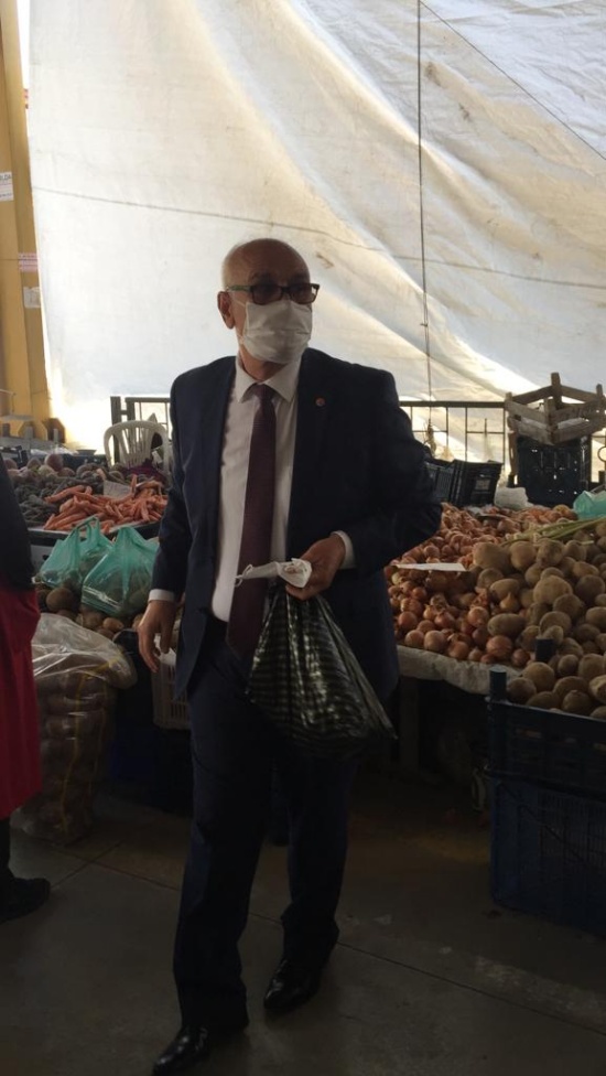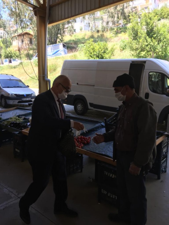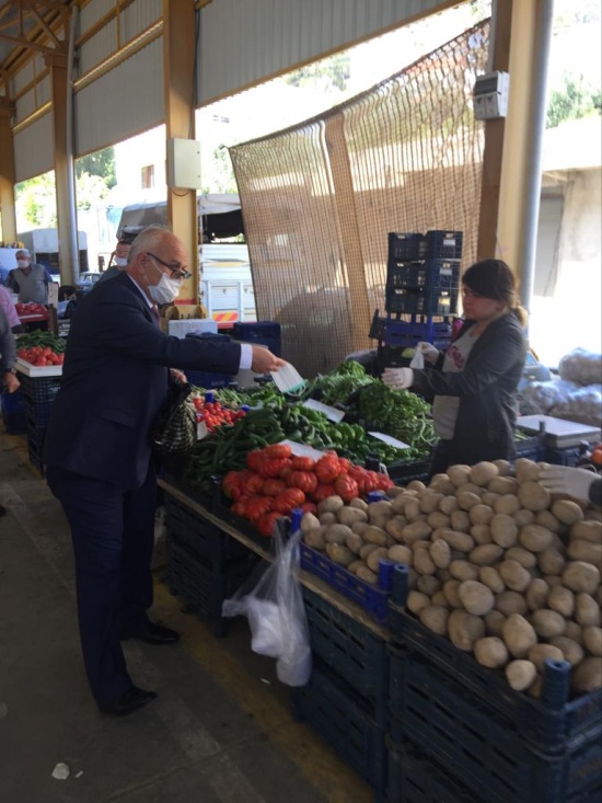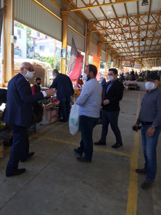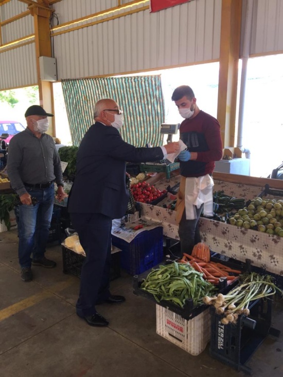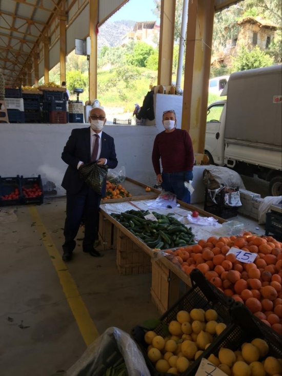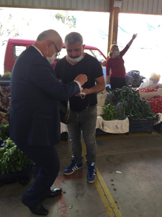 Korona virüs (Kovid19) ile mücadele kapsamında pazaryerindeki vatandaşlara ve esnafa maske dağıttı.