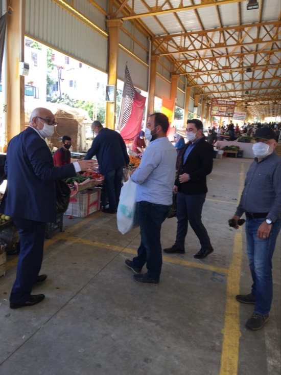 ve Pazar esnaflarına maske dağıtımı gerçekleştirdik.