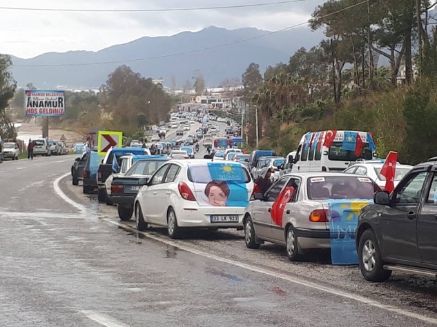 Yılmaz ve Kocamaz ile beraberindeki il ve ilçe başkanları ve belediye başkan adayları, İYİ Parti Anamur İlçe Başkanı Erdal Bulut ve Anamur Belediye Başkanı Mehmet Türe ile çok sayıda partili tarafından Pullu’da karşılandı. Çok sayıda aracı katılımıyla düzenlenen konvoyda otobüsten halk selamlandı.