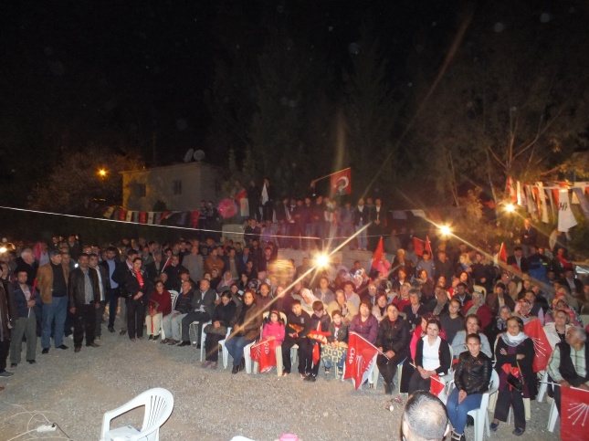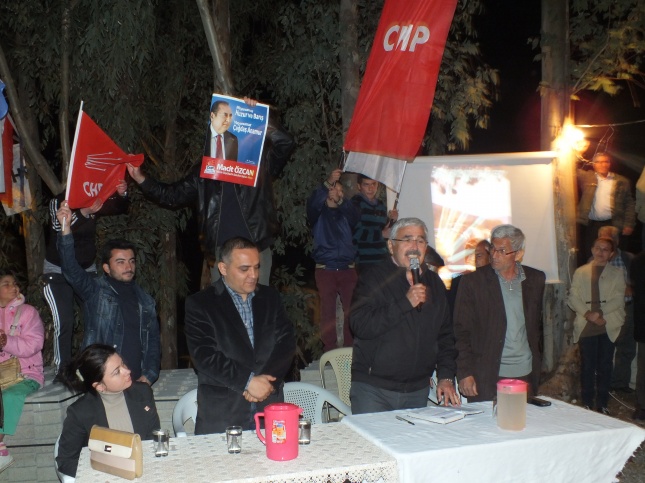 resim004Cumhuriyet Halk Partisi Anamur Belediye Başkan Adayı Suphi Alp köy toplantılarına aralıksız devam ediyor. İlçe başkanı Ayhan GÜVEN ve Meclis Üyesi Adayları ile birlikte Çataloluk köyüne çıkartma yapan CHP Anamur Belediye Başkan Adayı Suphi ALP, Meclis Üyesi Adaylarını tanıttı. Açılış konuşmasını yapan CHP Anamur İlçe Başkanı Ayhan GÜVEN Anamur’da  ve Mersin’de Macit ÖZCAN’LA Yerel İktidarı kurmaya geldiklerini ve hizmetlerin devamı için seçimlerde Cumhuriyet Halk Partisine oyları vermeye davet etti.