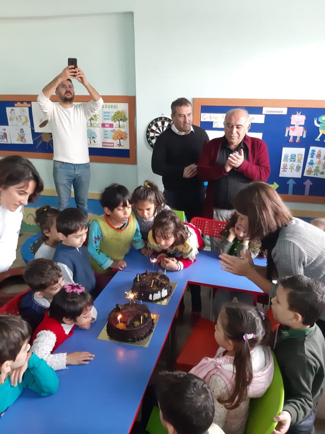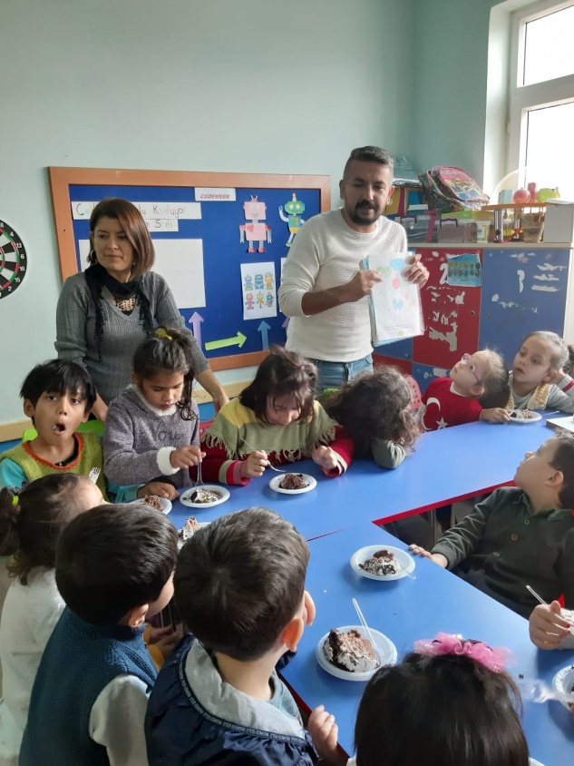 Öğretmen Gülcan Türkay, İyilikler Kulübü projesinin bu ayki konusunun Engellilerle Empati Kuruyorum olduğunu belirterek, özel çocuklarla bir araya gelen miniklerin birlikte pasta kestiğini söyledi.
