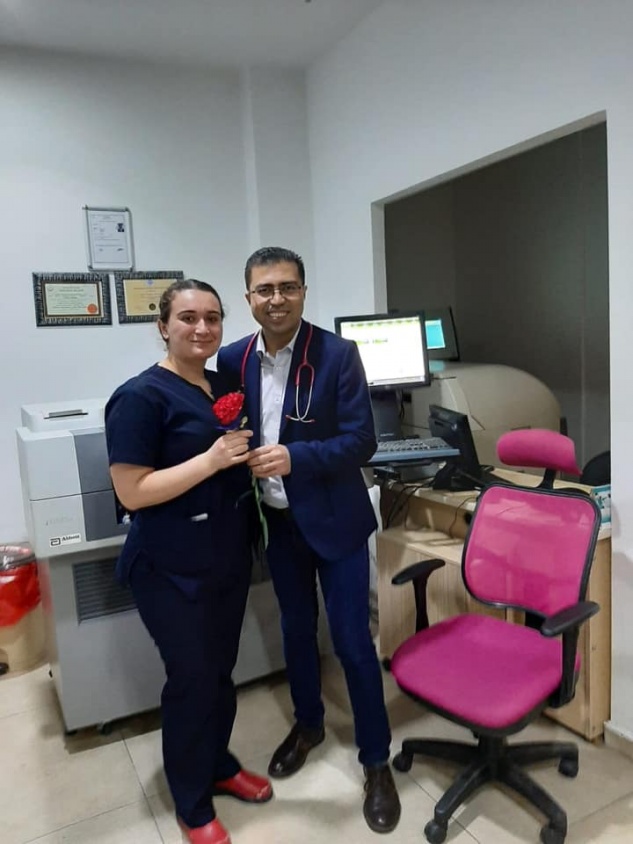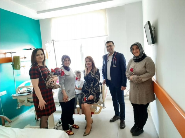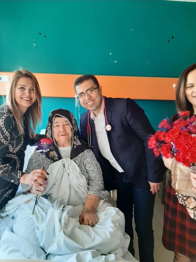 Dr. Hasan Çetinkaya ve  Halkla İlişkiler Müdürü Suna Yıldız, hastanede tedavi gören kadın hastaları tek tek ziyaret ederek çiçek verip Kadınlar Günü’nü kutladılar. Ayrıca hastanede görevli kadın personeli de kutladılar.