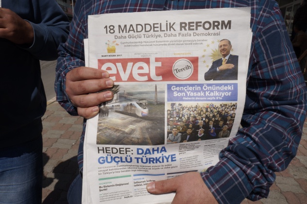 16 Nisan’daki halk oylamasına bugün itibarı ile 40 gün kalması ile kampanyasını tanıtım amaçlı Genel Merkez desteği ile AK Parti Gençlik Kolları tarafından bastırılan 5 milyon adet 24 sayfadan oluşan “evet” isimli gazete İl ve İlçe Teşkilatları tarafından teşkilatlarda görevli Gençlik Kollarının dağıtımı ile vatandaşa ulaşıyor.