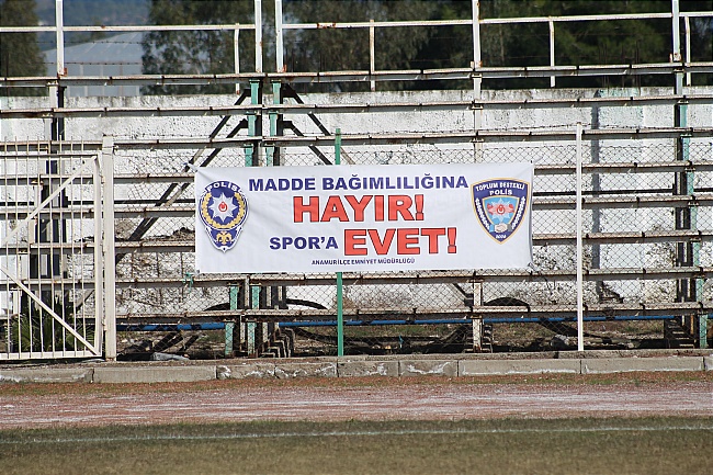 Maçta dikkat çeken diğer bir konu ise Anamur İlçe Emniyeti Toplum Destekli Polislerdendi. Emniyet yetkilileri stadyuma astığı “Madde Bağımlılığına Hayır, Spora Evet” pankartı ile madde bağımlılığına karşı sporun önemini vurguladı.