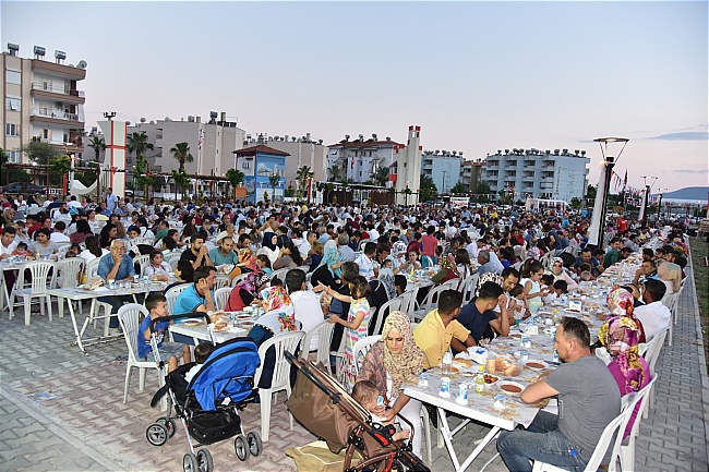 Kardeş Kentler Parkında düzenlenen iftar sofrası Anamur Belediyesi din görevlisi Yalçın Şahin’in kuran tilaveti ile başladı. Yemekte konuşma yapan Başkan Mehmet Türe “Eminiz ki herkesin evinde yiyecek yemeği vardır. Hem de belki buradakinden çok daha lezzetli ama önemli olan bu ortamı paylaşmak, burada birlikte vakit geçirmek. Bizi bu gecelerde yalnız bırakmayan siz misafirlerimize ve bize destek veren işadamlarımıza sponsorlarımıza teşekkür ederiz” dedi.
