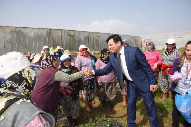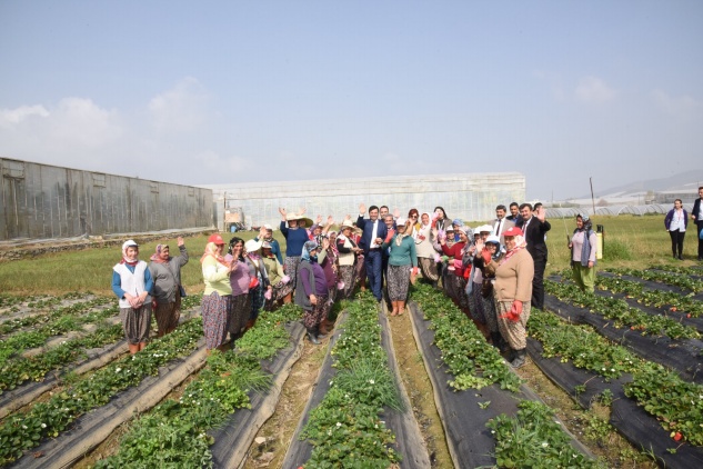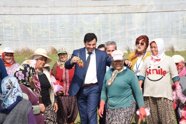 Türe, 8 Mart Dünya Kadınlar Günü programı kapsamında belediye hizmet binası, adliye, Kaymakamlık, geri dönüşüm tesisi ve çilek tarlalarını ziyaret etti.