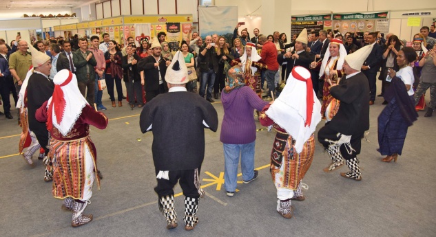 Fuarın 2. Gününde ATO Congresium Fuar Merkezi’ etkinlik alanında binlerce kişiye Anamur Belediyesi Halk Oyunları ekibi tarafından yöresel oyunlar sergilenirken, belediye personelleri tarafından Anamur Muzu dağıtımı gerçekleşti.
