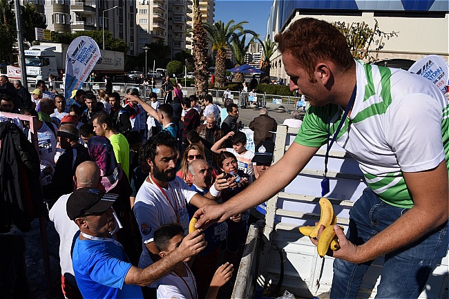 Birçok ülkeden gelen yarışmacılar ve halk koşuna katılan vatandaşlara koşu bitiş çizgisinde Anamur muzu ikram edildi.