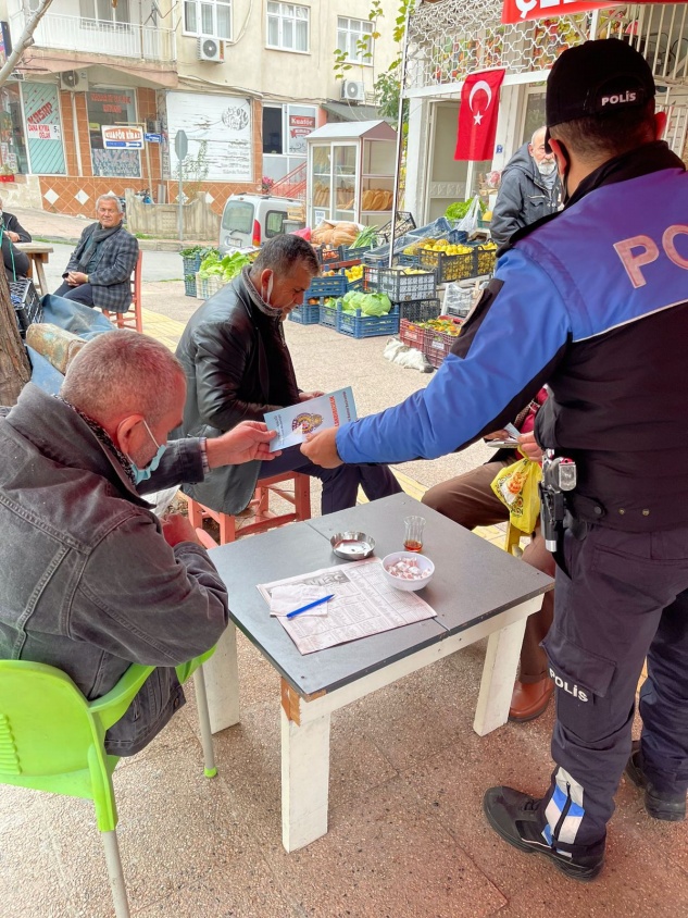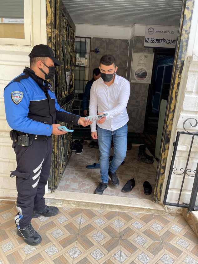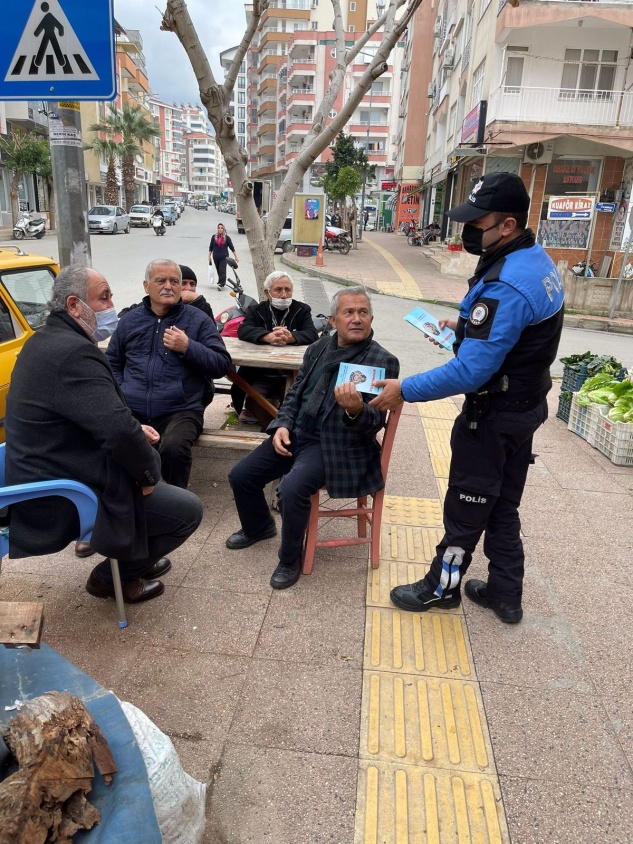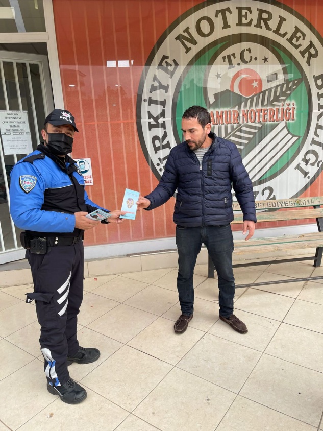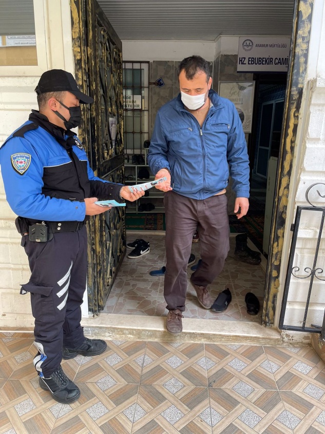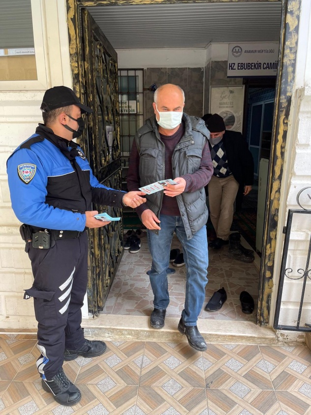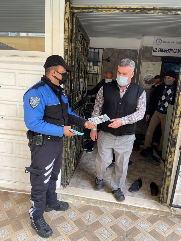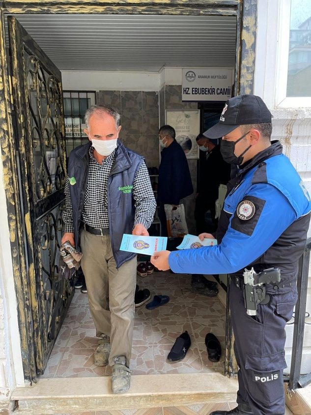 Anamur Emniyet Müdürlüğü Toplum Destekli Polislik Büro polisi İlçe genelinde halkın yoğun olduğu yerlerde, cuma namazı çıkışı camilerde, noter ve bankalar çevresinde, pazar yerlerinde, otobüs duraklarında ve ATM çevresinde vatandaşları dolandırıcılara karşı uyardı, iş yerlerinin camlarına bilgilendirme afişleri astı.