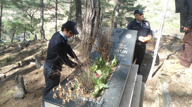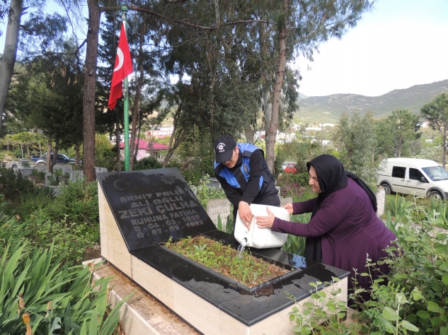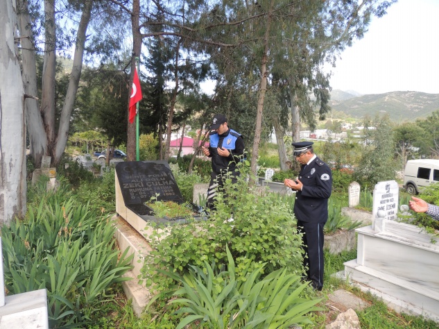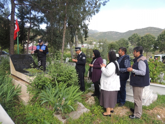 Ören Mahallesinde 1997 yılında şehit olan Zeki Çulha´yı mezarı başında ziyaret edip dua okudular. Bu sırada Şehit eşinin mezarını ziyaret için İstanbul´dan gelen Serpil Çulha, polis meslektaşlarının eşi için dualar okuduğunu ve mezarının çiçeklerini suladığını görünce duygulu anlar yaşadı.