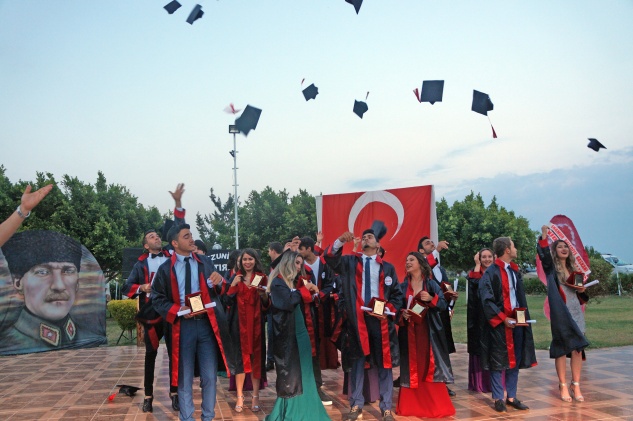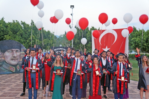 Daha sonra plaketlerini ve diplomalarını alan öğrenciler, balon ve kep fırlatarak mezuniyet coşkusunu yaşadı. Öğrencilerin mutluluğuna aileleri de ortak oldu ve hatıra fotoğrafları çektirildi.