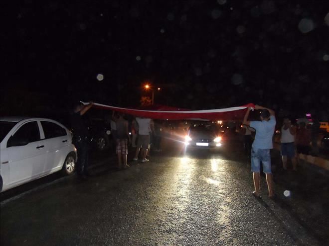 Eyleme katılan gençler, yanlarında getirdikleri Türk Bayrağını açarak küçük araçları bayrağın altından geçirdiler. Askerlerin ‘Dağılın´ uyarılarını dikkate almayan vatandaşlar,  uzun süre askerlerle tartıştılar. Akşam saat 20:30 sularında başlayan eylem, gecenin ilerleyen saatlerine kadar devam etti.