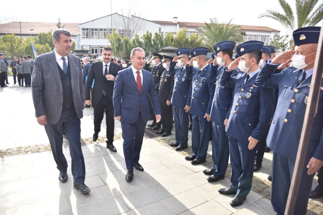 Kaymakam Bilal Bozdemir, Belediye Başkanı Hidayet Kılınç, Cumhuriyet Başsavcısı Meriç Dede, Garnizon Komutanı Albay Taner Tükel, İlçe Milli Eğitim Müdürü İlyas Mercan, gaziler, daire amirleri, siyasi partiler ve sivil toplum kuruluşları temsilcileri, öğretmenler ve öğrenciler katıldı.