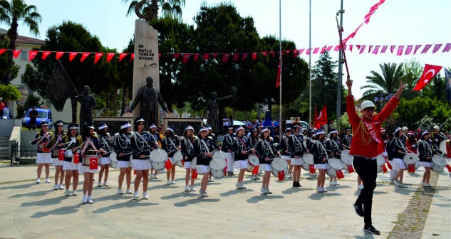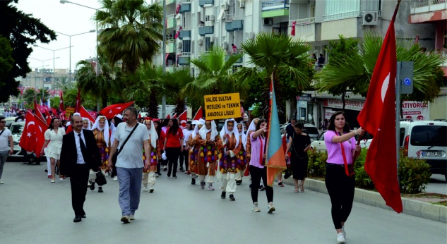 Saat 09 da Anamur Otogar yanında toplanan okullar ve vatandaşlar Atatürk Bulvarı üzerinden Saçkan kavşağına buradan yeni Cumhuriyet meydanına bando eşliğinde yürüdü.