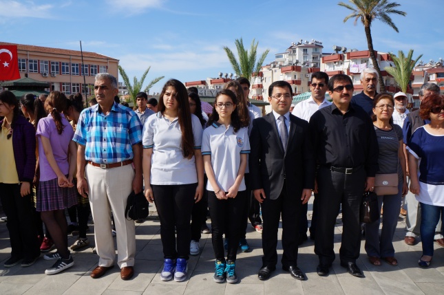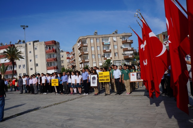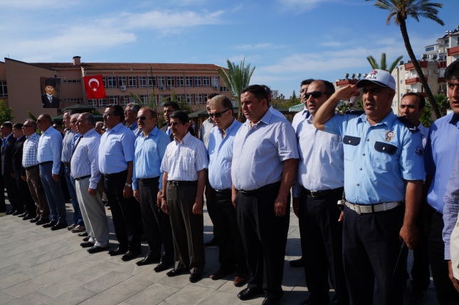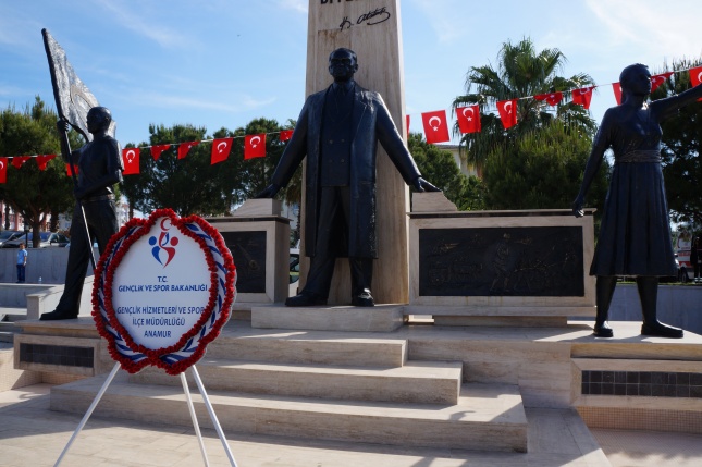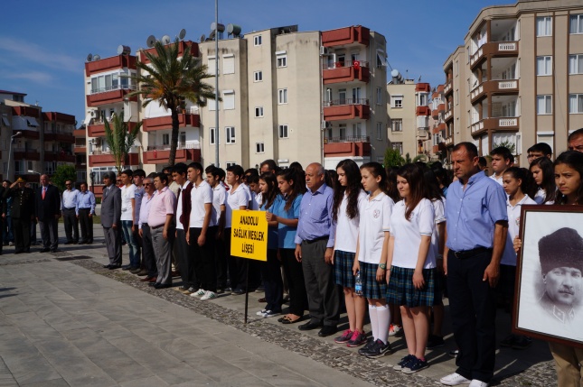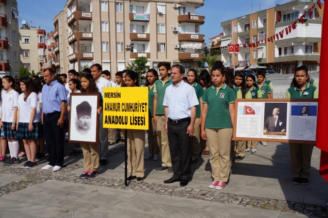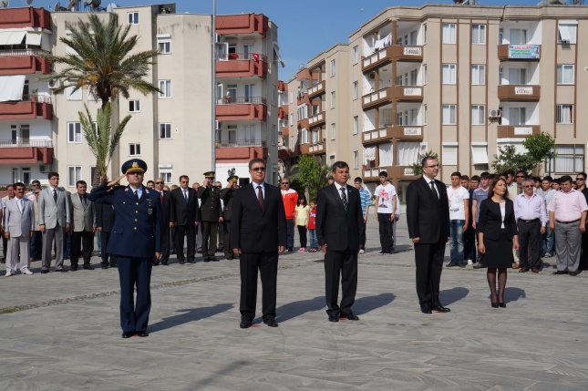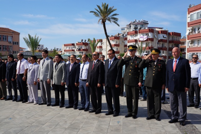 Sunumunu Elif Ayhan’ın yaptığı tören1 dakikalık saygı duruşu ve istiklal marşının okunmasıyla başladı.Gençlik Spor İl Müdürlüğü’nün Atatürk anıtına çelenk sunulmasıyla tören sona erdi.Yeni Cumhuriyet meydanında düzenlenen törene Anamur Kaymakamı Cengiz Cantürk, Anamur Cumhuriyet Başsavcısı M.Akif Dönertaş, Anamur Belediye Başkanı Mehmet Türe, Garnizon Komutanı Binbaşı Sefa Bakırcıoğlu, Askerlik Şube Başkanı Üsteğmen İbrahim Tuna Güler, Anamur İlçe Emniyet Müdür Vekili M.Mithat Tolunay, İlçe Jandarma Komutanı Binbaşı Hayrettin Fidan, Milli Eğitim Müdürü Mehmet Ali Kocaman, sivil toplum örgütleri Okul Müdürleri, Öğretmenler ,Öğrenciler ve Gaziler katıldı.