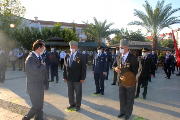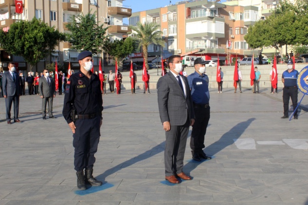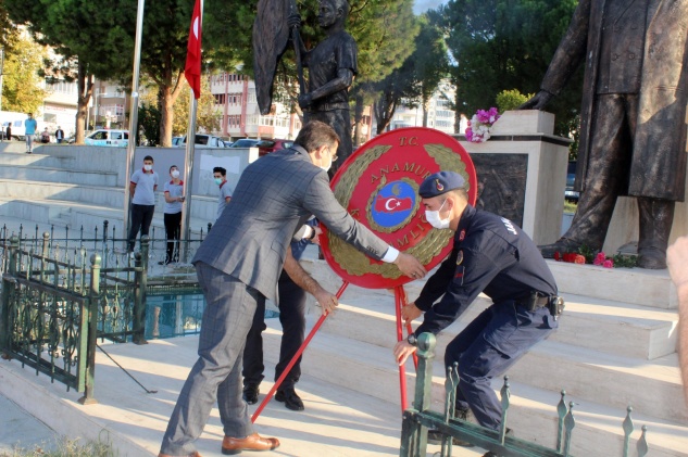 Cumhuriyet meydanındaki törende Atatürk Anıtı’na çelenkler sunuldu, saygı duruşunda bulunuldu ve İstiklal Marşı okundu.