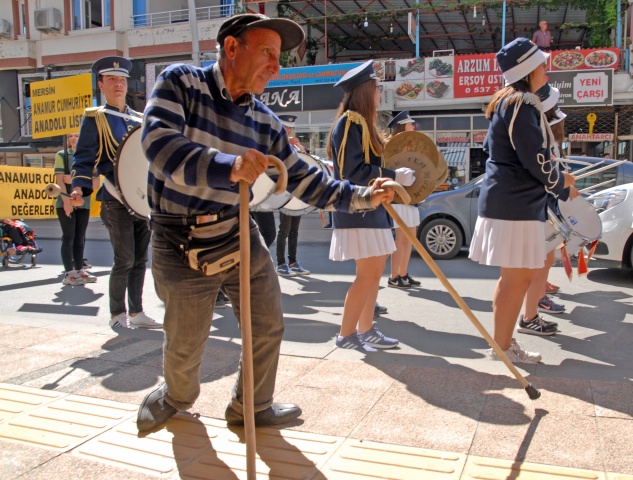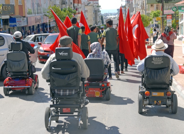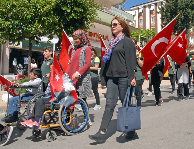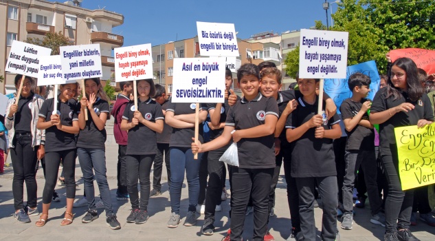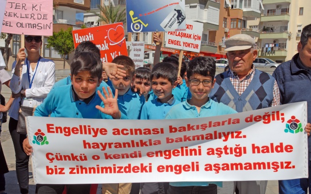 Dernek binası önünde toplanan engellilere öğrenciler ve öğretmenler eşlik etti. Anamur Cumhuriyet Anadolu Lisesi Bandosu eşliğinde ellerinde Atatürk Bulvarı’nda yürüyen engelliler ve öğrenciler, ellerinde taşıdıkları pankartlarla dikkat çektiler. Vatandaşlar da alkışlarla engellilere destek verdi.