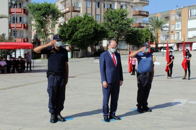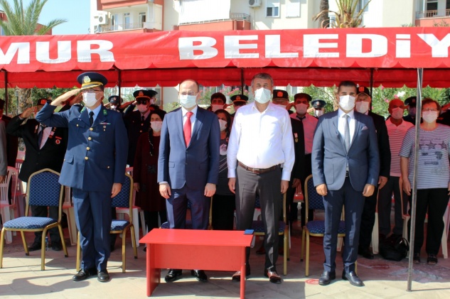 Cumhuriyet meydanındaki çelenk sunma törenine Anamur Kaymakam Vekili Muhsin Duran Kalkan, Anamur Belediye Başkanı Hidayet Kılınç, Garnizon Komutanı Albay Taner Tükel, Cumhuriyet Başsavcısı Meriç Dede, Emniyet Müdürü Ömer Engin Genç, Jandarma Komutanı Rüştü Şen ve gaziler katıldı.