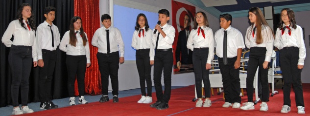 Programda, Uğur Okulları Edebiyat Öğretmeni Yüksel Taşgölgesi ve öğrencileri tarafından hazırlanan Öğretmen adlı kısa tiyatro oyunu sahnelendi. Türkçe Öğretmeni Gizem Eroğlu ve öğrencileri de oratoryo sundu. 10-A sınıfı öğrencisi Özge Bal ve 11-B sınıfı öğrencisi Barış Pınar da şiir okudu.