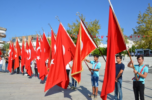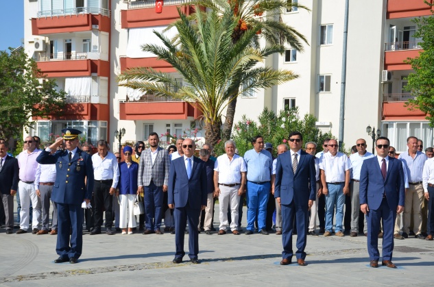 Cumhuriyet meydanındaki törene, Kaymakam Mehmet Kurdoğlu, Belediye Başkanı Mehmet Türe, Garnizon Komutanı Albay Şaban Delioğlu, Cumhuriyet Başsavcısı Oğuz Şükrü Ener, siyasi parti ve sivil toplum kuruluşlarının temsilcileri, mülki ve askeri erkan katıldı.
