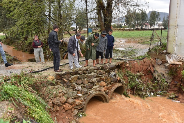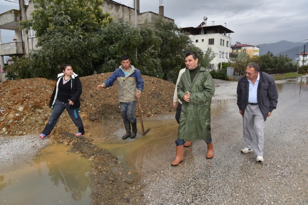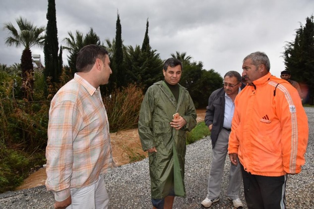 Merkez ziyaretlerinin ardından Sultan Alaaddin Mahallesi Göçmenler Mevkiinde evini su basan vatandaşlara geçmiş olsun dileklerinde bulunan Başkan Mehmet Türe daha sonrada Sultan Suyu civarında yer alan ve kanalların taşmasıyla çilek seraları su altında kalan vatandaşları ziyaret ederek geçmiş olsun dileklerini iletti. Sultan Suyu bölgesinde MESKİ’ye ait iş makineleri kanalları açmak için mücadelelerini sürdürürken Başkan Türe Sultan Suyu bölgesinde tekneleri bulunan balıkçılara da geçmiş olsun Dedi. Anamur Lisesi önünde Ak Cami civarında yoğun yağış sonrası su giderlerinin patlaması sonucu yolda göçük meydana gelen bölgeyi inceleyen Başkan Mehmet Türe Fen İşleri yetkililerinden bilgi aldı.