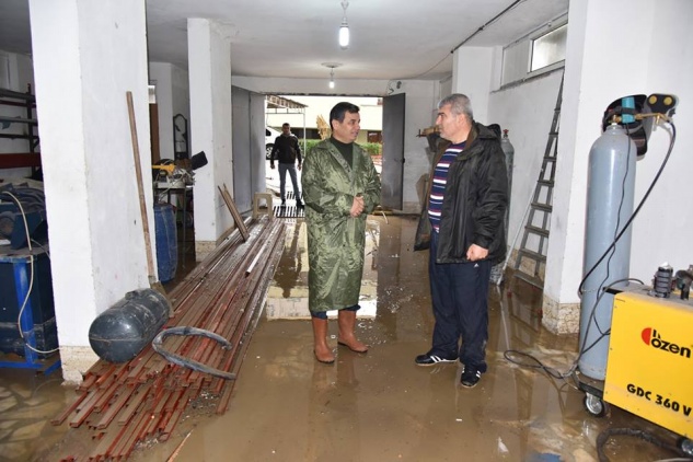 Bölgede etkili olan yağışlardan zarar gören vatandaşları, esnafları, üreticileri, ziyaret eden Belediye Başkanı Mehmet Türe ilk ziyaretini 4×4 reklam sahibi Hüseyin Öztürk’ün iş yerinden başladı. Dükkanı tamamı su altında kalan makineleri zarar gören Hüseyin Öztürk’e geçmiş olsun dileklerini ileten Türe’ye duyarlı davranışından dolayı teşekkür eden Hüseyin Öztürk “Allahtan gelen bir şey, yapacak bir şey yok hasar tespitinde bulunmaya çalışıyoruz, dükkanı dolduran suları boşaltmaya çalışıyoruz.” dedi. Buradan incelemelerine şehir merkezinde devam eden Başkan Türe, Dükkânlarını su basan iş yeri sahiplerine geçmiş olsun dileklerini iletti. MESKİ ve Anamur Belediyesi ekipleri ihbar gelen noktalara giderek müdahalelerde bulundu.