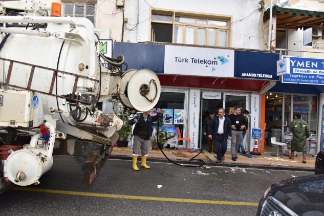 Yağışlar nedeni ile Anamur´un sokak ve caddelerinde sel suları oluştu.