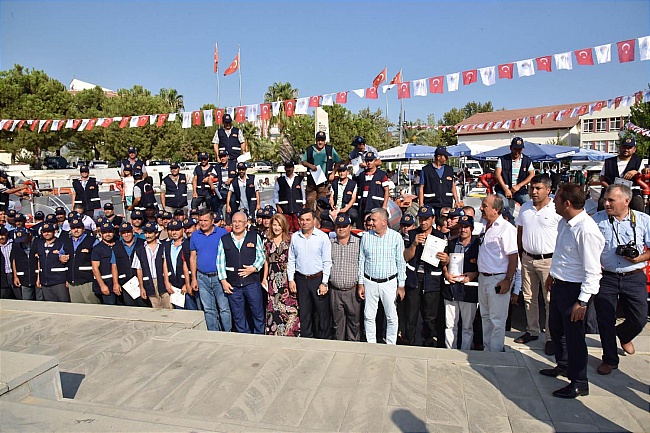 Yeni Cumhuriyet Meydanında verilen sertifikaların ardından her 5 kişilik itfaiye ekibine bir su tankı verildi. Sertifika teslim töreninin ardından sertifikalarını alan gönüllü itfaiyeciler kep fırlattılar. Törende ayrıca engelli vatandaşlarımıza istihdam sağlamak amacı ile Simit Arabam Engel Tanımam´ adlı proje kapsamında iki engelli vatandaşa simit arabası dağıtıldı.