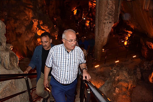Son olarak Köşekbükü Astım mağarasına geçen heyeti Anamur Belediye Konservatuvarı Halkoyunları ekibi karşıladı. Devamında ise Anamur Belediyesi Konservatuvarı görevlileri çeşitli şarkılar seslendirdi. Mağarada yapılan çalışmalar, yapılan restore çalışmaları hakkında Anamur Belediyesi Peyzaj Mimarı İlhan Arıkan bilgi verdi. Burada da Konuşma Yapan Başkan Kocamaz doğal, tarihi değerlere sahip çıkılmasını, 1994 yılından beri bunun için çabaladığını dile getirdi. Açılış Kurdelesini birlikte kesen Mersin Büyükşehir Belediye Başkanı Burhanettin Kocamaz, MHP Mersin Milletvekili Baki Şimşek, Gülnar Belediye Başkanı Ahmet Günel, Anamur Belediye Başkanı Mehmet Türe ve mahalle muhtarları, mağarayı gezdiler.