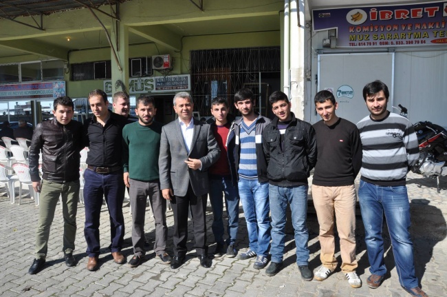 Anamur Hal Başkanı Ahmet Şeref Gümüş ile görüşen Olçum, Hal meydanında esnaflara yaptığı konuşmada, “Anamur’un bir tarım kenti olduğunu Milli gelir olarak Türkiye’de Anamur’un birçok şehirden bile yüksek olduğunun altını çizerek yaşam standartında düşük olunmasının sebebinin yatırımların önünün kapalı olmasından kaynaklandığını söyledi.