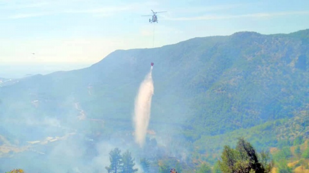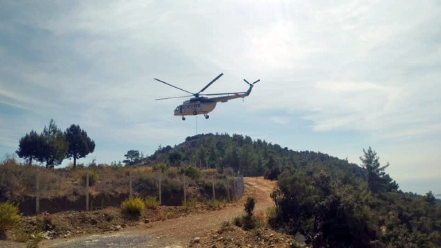 Bölgedeki sarp arazi yapısından dolayı güçlükle müdahale edilen yangın, havadan iki helikopter, karadan da 15 arazözle kontrol altına alındı.