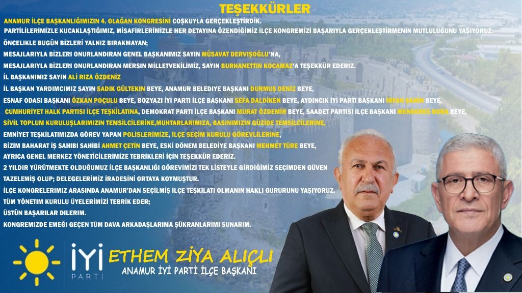 İYİ Parti Anamur İlçe Başkanlığı, 4. Olağan İlçe Kongresi’n...