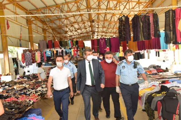 Koronavirüs salgını nedeniyle pazar yerlerinde uygulanan sosyal mesafe kurallarından dolayı işlerin düşüklüğünden yakınan esnaflara maske, mesafe ve hijyen kurallarını hatırlatan Başkan Kılınç:’’Şu ana kadar ilçemizde herhangi bir vaka görülmemişse bunun nedeni tüm vatandaşlarımızın devletimiz tarafından tavsiye edilen kurallara uygun davranmasıdır. Belediye olarak aldığımız tedbirler ve sizlerin yapılan uyarılara riayet etmeniz, ilçemiz Anamur’un hiç vaka görülmeyen kent olarak anılmasını sağlayacaktır. İnşallah bu süreç sona erdiğinde pazaryerlerimiz de pazarcılarımızda eski neşesine kavuşacaktır.’’ dedi.
