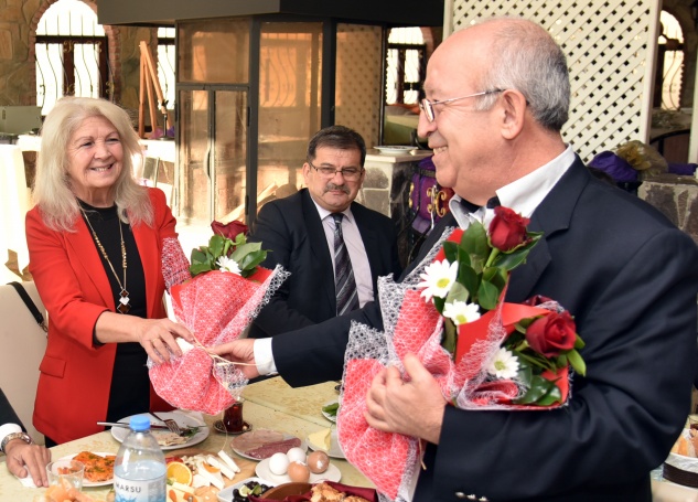 Konuşmaların ardından Belediye Başkanı Hidayet Kılınç ve Ticaret ve Sanayi Odası Yönetim Kurulu Başkanı Ferudun Torunoğlu,gazetecilere çiçek takdim ederek, 10 Ocak Çalışan Gazteciler Bayramlarını tebrik ettiler.