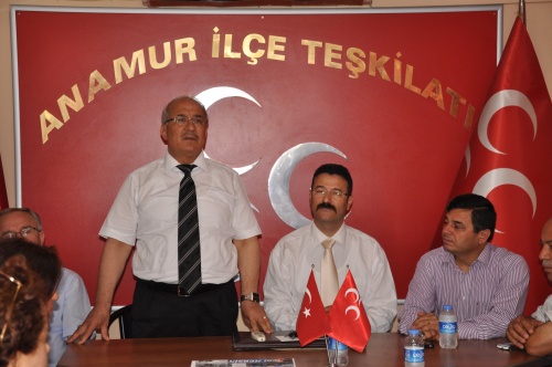 Parti binasında MHP Anamur ilçe Başkanı Ramazan Yalçın ve yönetim kurulu üyeleri tarafından karşılanan Başkan Kocamaz, burada partililere seslendi. Anamur Belediye Başkanı Mehmet Türe ve Ören Belediye Başkanı Aziz Doluoğlu’nunda hazır bulunduğu toplantının açılış konuşmasını İlçe Başkanı Ramazan Yalçın, yaptı. Yalçın konuşmasında, “2014 yerel seçimlerini kazanmak için canla başla çalışacaklarını ve 3 güzide adayın hangisi olursa olsun MHP Anamur İlçe teşkilatı olarak emrinde olduklarını dile getirdi. Anamur Belediye Başkanı Mehmet Türe ve Ören Belediye Başkanı Aziz Doluoğlu’da konuşmalarında birlik ve beraberlik içerisinde canla başla mücadele edip Başkan Kocamaz’a başarı dileklerinde bulundular.