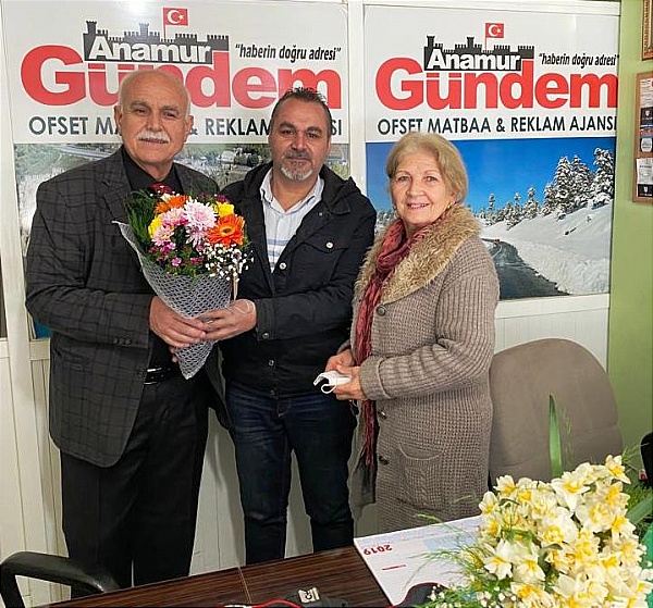 Anamur Esnaf Sanatkarlar Kredi ve Kefalet Kooperatifi Başkanı Ahmet Özdemir, Anamur Gazeteciler cemiyeti başkanı Zümrüt Cömertler 10 Ocak Çalışan Gazeteciler Günü dolayısıyla Anamur Gündem Gazetesi Kurucusu İmtiyaz sahibi Muharrem Garip’ i ziyaret ederek gününü kutladı. Ziyaretten duyduğu memnuniyeti dile getiren Gazeteci Muharrem Garip Başkanlara teşekkür ederek bu anlamlı günde bizlerin moral ve motivasyonumuzu arttırıcı ziyaretinizden dolayı teşekkür ediyorum dedi. Ziyarette kısa bir konuşma yapan Anamur Esnaf Sanatkarlar Kredi ve Kefalet Kooperatifi Başkanı Ahmet Özdemir, “ Demokrasinin temel taşlarından birisi olan basın, her geçen gün günümüzde hayati bir önem taşıyor.Görsel ve yazılı medyanın yanında sosyal medyanın da etkinliğinin sürekli arttığı günümüzde, gazetecilerin üzerine düşen sorumluluğun her zamankinden daha fazla olduğuna dikkati çeken Özdemir,: “Milletimizin gözü, kulağı, vatandaşlarımızın doğru haber ve bilgi edinme ihtiyacının karşılanmasına vesile olan gazetecilerimiz, zor şart ve imkanlar içerisinde, fedakarlıkla tüm enerjisini halkımızın doğru haber alması için harcayan basın emekçilerimizin bu gayretleri her türlü takdiri hak etmektedir. Toplumun genel talep ve görüşlerini kamuoyuna doğru ve hızlı yansıtılması görevini üstlenen basın mensuplarımızın 10 Ocak Çalışan Gazeteciler Gününü en içten dileklerimle kutluyor, çalışmalarında başarılar diliyorum.”