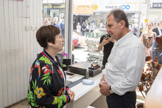 Daha sonra şehir merkezindeki esnafları ziyaret eden Seçer, çarşı esnafı tarafından sevgi ile karşılandı. Başkan Seçer’i “Memleketin en karizmatik Başkanı, hoş geldin” diyerek karşılayan bir esnaf, Büyükşehir’in hizmetlerinden ötürü de teşekkürlerini iletti. Bir başka esnaf ise Başkan Seçer’e gaz lambası hediye ederek, “Enerjiniz hiç bitmesin” dileğinde bulundu.