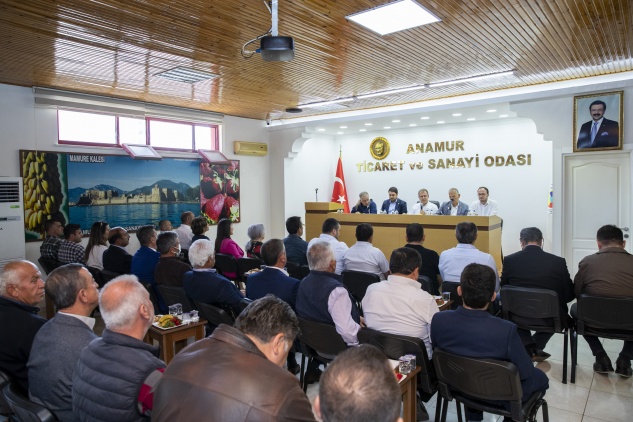 Esnaf gezisinin ardından Anamur Ticaret ve Sanayi Odası’na (ANTSO) geçen Seçer, burada ANTSO Başkanı Mehmet Tuna, ANTSO Meclis Başkanı Orhun Yıldız beraberinde STK, iş dünyası ve muhtarlar ile bir araya gelerek toplantı gerçekleştirdi.