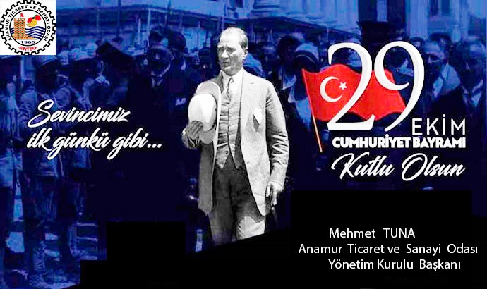 Anamur Ticaret ve Sanayi Odası (ANTSO)Yönetim Kurulu Başkanı Mehmet Tuna, 29 Ekim Cumhuriyet Bayramı vesilesi ile kutlama mesajı yayımladı.