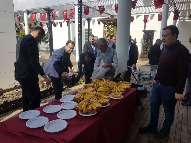 Başkan Mehmet Türe, muzların temin edilmesine katkı sağlayan Anamur ve Mersin Büyükşehir Belediyesi Meclis Üyesi Ali İlhan Ayhan’a teşekkür etti. Meclis girişinde tüm Belediye Başkanlarına ve Meclis üyelerine Anamur Muzu ikramı yapıldı. Yaklaşık 20 kasa muz 1000’e yakın katılımcıya dağıtılırken Anamur Muz’unun tanıtıma katkı sağlandı.