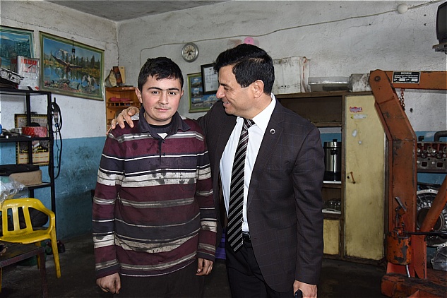 Sanayi Sitesinde esnaflarla sohbet eden Başkan Türe, davetleri kırmadı bazı dükkanlarda da çay içti.