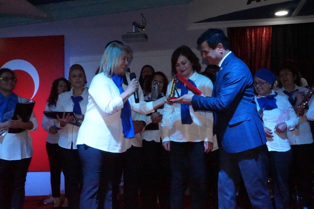 Konserin sonunda Belediye Başkanı Mehmet Türe, korodaki kadınlara çiçek vererek Kadınlar Günü’nü kutladı. Konservatuvar yetkilileri de Başkan Türe’ye gecenin anısına plaket takdim etti.
