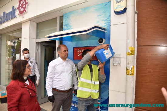 Tüm Dünyada olduğu gibi ilçemizde’de Coronavirüsü’ne yönelik önlemler kapsamında tedbirler alınmaya devam ediyor. Bu kapsamda Anamur Belediyesine bağlı Temizlik İşleri Müdürlüğü ekipleri, vatandaşın elleri ile en çok temas ettiği ATM’lerin yanlarına birer dezenfekte kutucukları koyarak hem işlerine başlarken hem de işlerini bitirdikten sonra ellerini dezenfekte etmeleri uyarısında bulundu. Tokalaşmayalım, Kucaklaşmayalım.’ Uyarısı yazan broşürler yapıştırıldı. Belediye Başkan Yardımcısı Türkan Kasapoğlu konu ile ilgili şunları söyledi;“Vatandaşlarımız ATM’lere geldiklerinde ellerinde virüs olabilir. Ellerini bu kutucuklarla dezenfekte ederek dışarıdan getirdikleri virüsleri ATM’lere taşımamış olurlar. Ve ya işleri bittikten sonra tekrar dezenfekte ederek ATM’den almış olabilecekleri virüsleri başka yerlere götürmemiş olurlar.” Dedi. Belediyenin bu uygulamasına bazı özel banka müdürleri, Genel Merkezden onay almaları gerektiğini belirterek izin vermediler. Vatandaşlar bu uygulamanın toplum sağlığı açısından büyük önem taşıdığına dikkat çekerek Belediye’ye teşekkür ettiler.